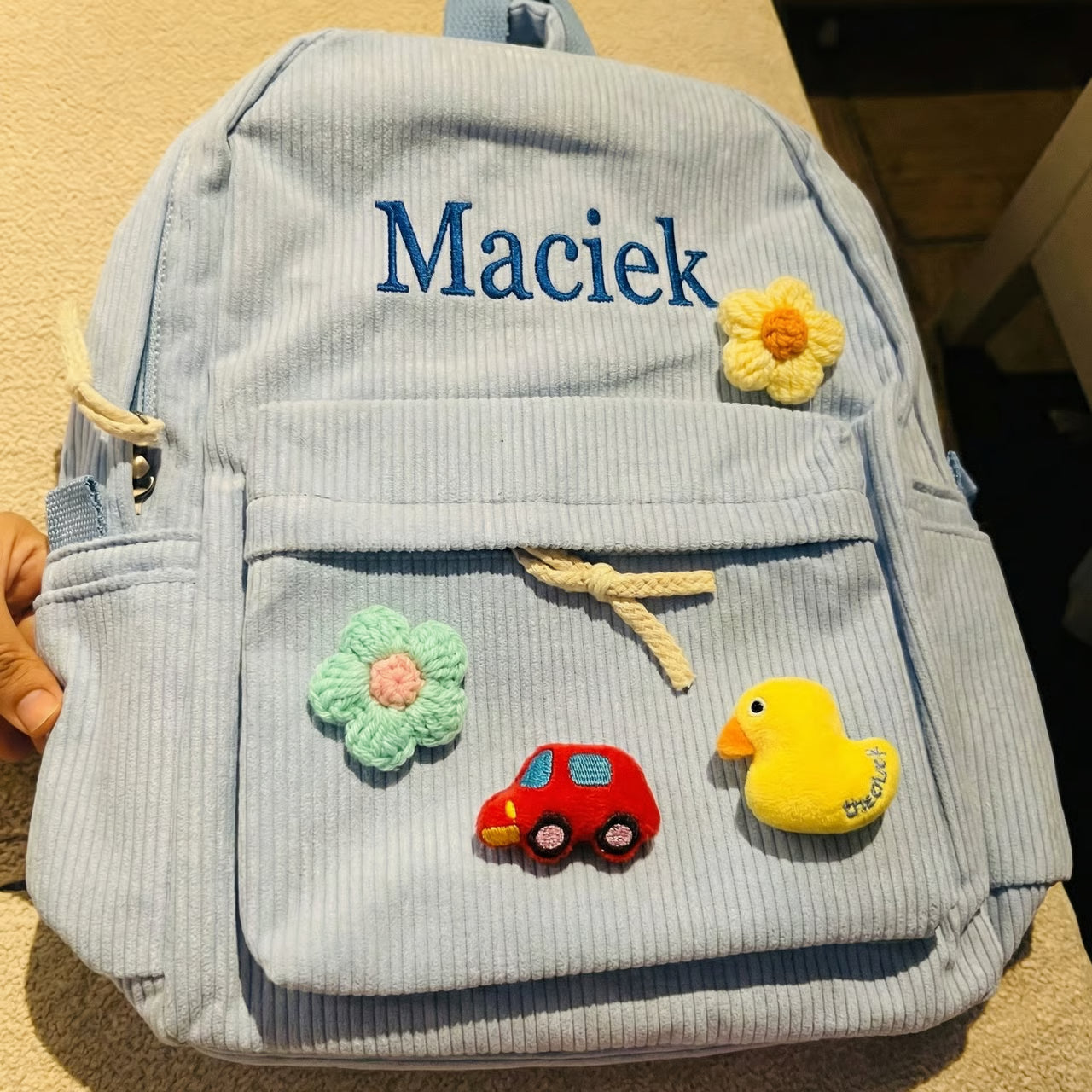 Nasze ręcznie wykonane plecaki zostały stworzone z myślą o codziennych przygodach – w przedszkolu, szkole i podczas weekendowych wyjść. Wykonane z miękkiego, a jednocześnie trwałego sztruksu, łączą funkcjonalność z wyjątkowym, personalnym charakterem.